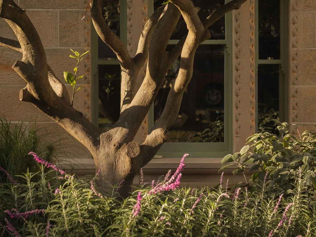 Affectionately known by locals as the Gingerbread House, this Bronte sandstone terrace crafted by the same stonemasons who worked on Vaucluse House has been reimagined as a layered coastal garden for a creative family of four. Romantic and a little unruly, the landscape softens the home’s formal heritage with a loose, textural planting character that feels innately of place.
